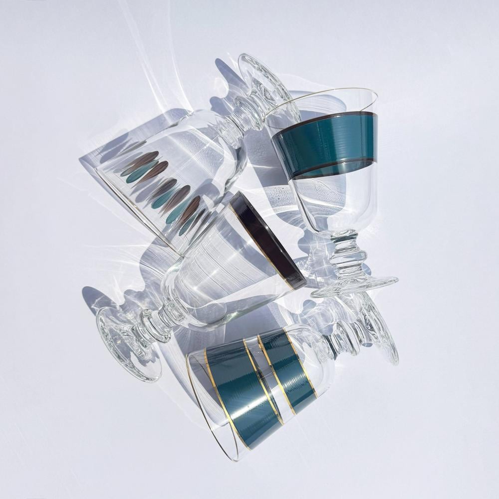طقم كاسات مكون من ٤ تصاميم مختلفة مرسومة يدوياً. كل رسمة ٣ قطع.